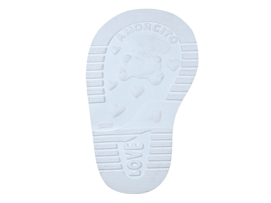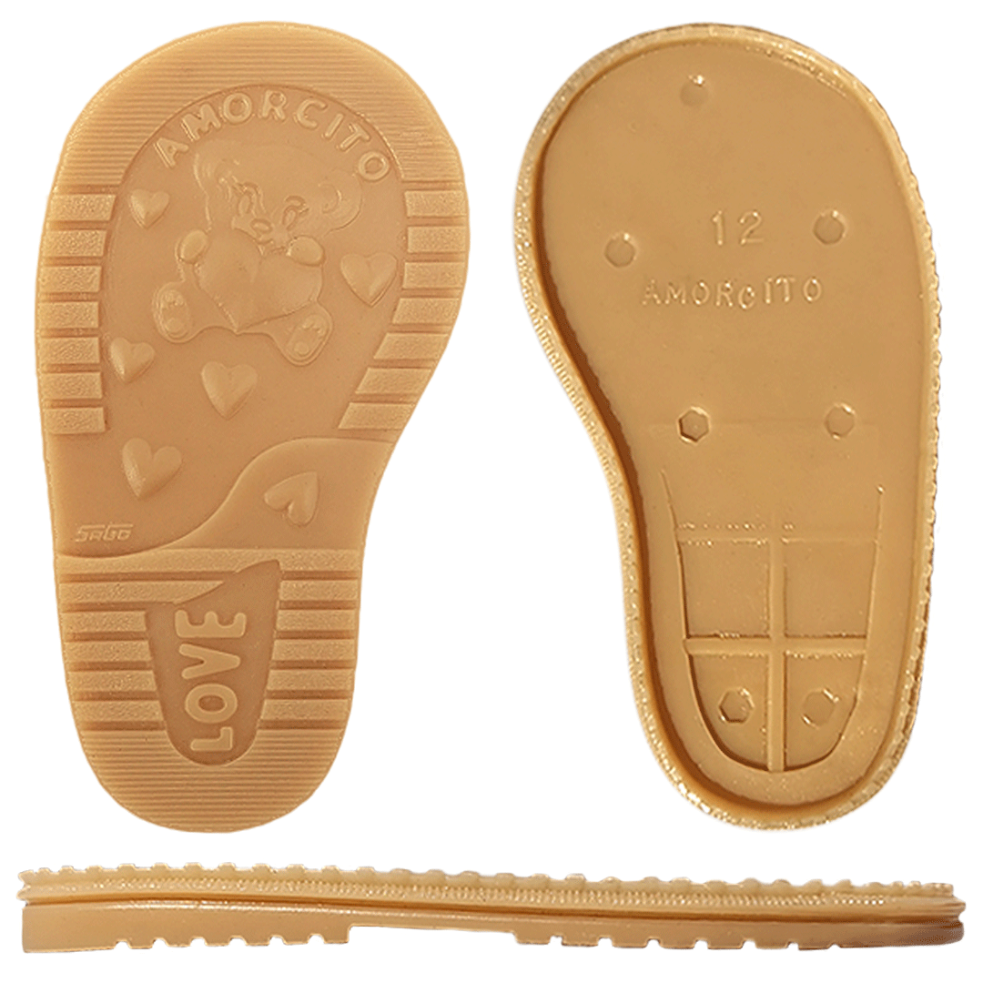 Suela para bebé de diseño exclusivo de un tierno osito sosteniendo un corazoncito, suela diseñada para hormas un poco más amplias, perfecta para zapatito de bebé de recio más amplio.