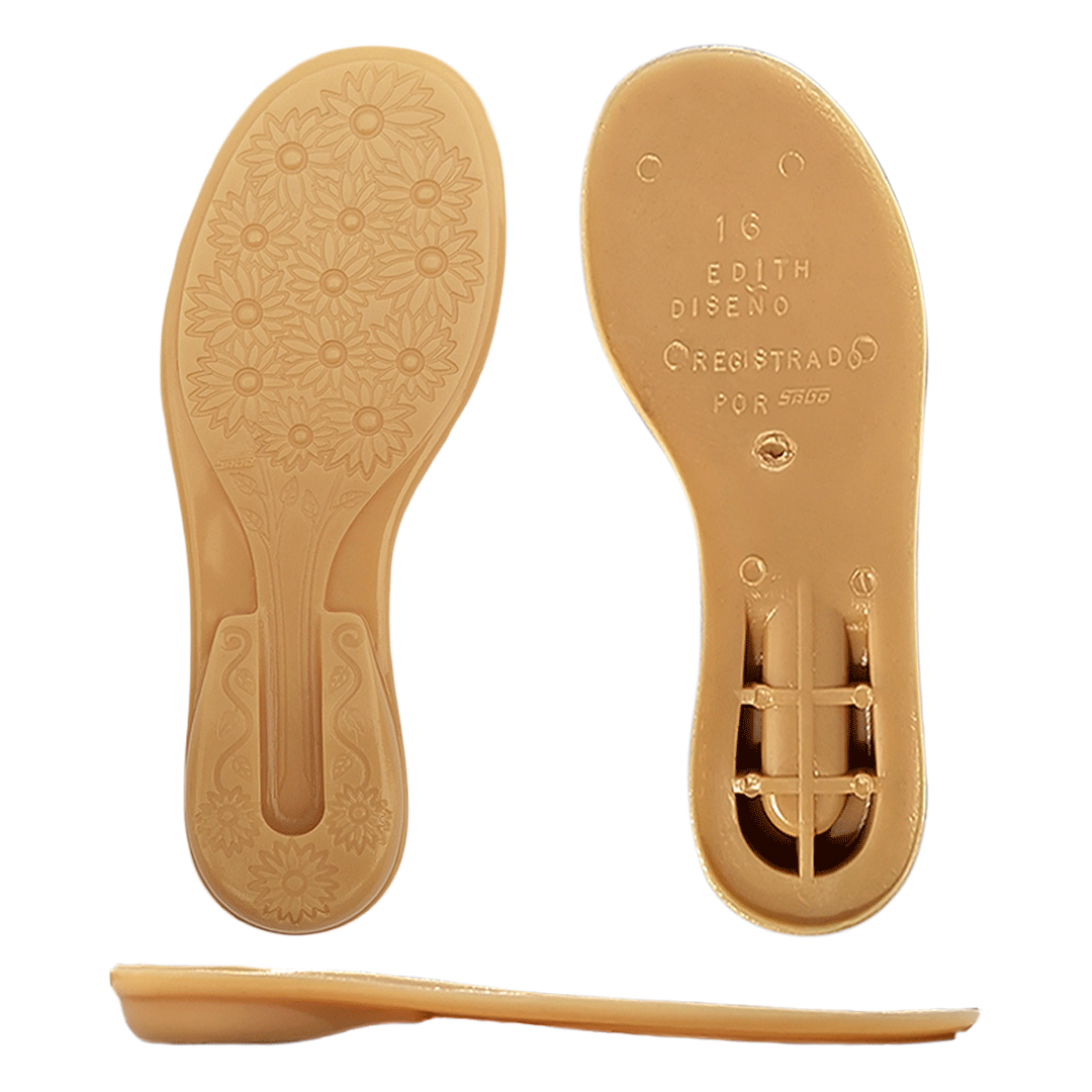 Suela ideal para zapatito o valerina de niña o dama con hermoso diseño de florecitas y pequeño tacón de diseño exclusivo con forma de herradura.