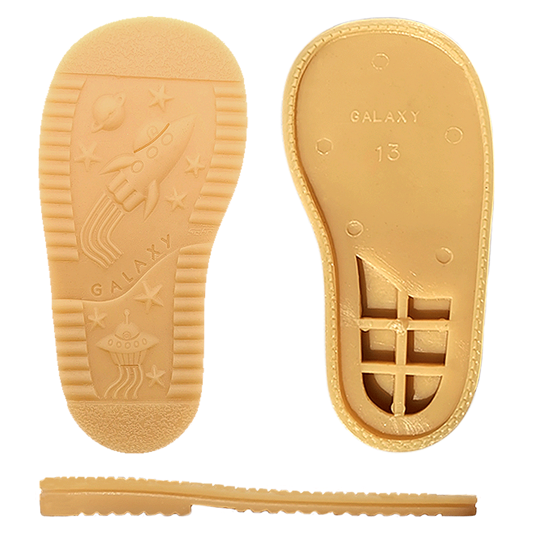 Suela con diseño exclusivo de nave espacial, estrellitas y planeta, es ideal para dar elegancia al calzado para bebé.
