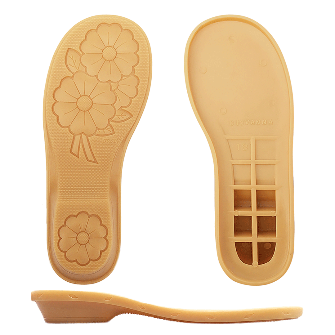 Suela para zapatito clásico con diseño floral y pequeño tacón.